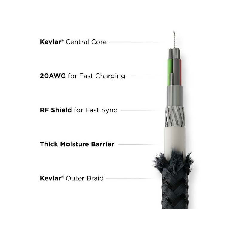 Kabel izrađen je od kvalitetnih materijala i dodatno ima pleteni površinski sloj. Zahvaljujući pletenici, otporan je na savijanje, udarce i habanje, što jamči njegov dug vijek trajanja.